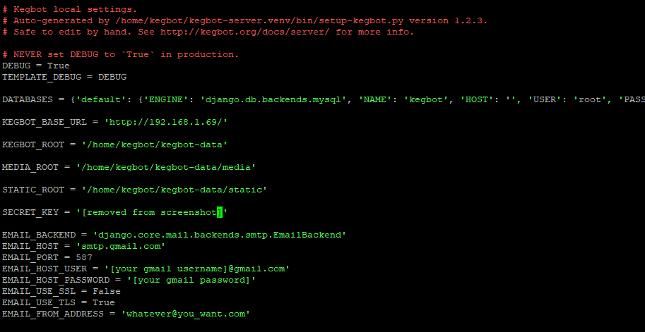 For the NODE server that enables real-time pouring, it’s best to follow the instructions in that folder on Github to get Node installed, and then create that new directory under kegbot-server.venv that specifically holds the node server files.